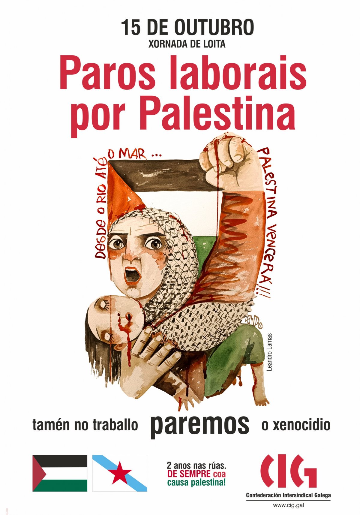 Dende a CIG convocamos unha xornada de loita o 15 de outubro contra o xenocidio do pobo palestino. Chamamos a secundar os paros laborais de catro horas por quenda e a concentrarse nos centros de traballo, nas cidades e nas vilas do País. Anunciamos publicamente a convocatoria dunha xornada de paro xeral en Galiza para o vindeiro 15 de outubro para reclamar a fin do...