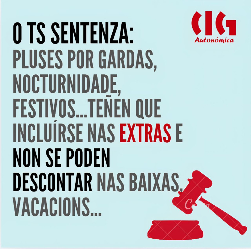 A CIG-Autonómica esiximos á Xunta de Galiza que aplique de oficio a sentenza do Tribunal Supremo nº 820/2025, do 25 de xuño, e que retribúa de forma completa e con carácter retroactivo os complementos salariais polas gardas, quendas, nocturnidade, domingos e festivos.
