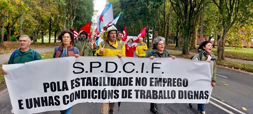 Arredor de 400 profesionais do Servizo de Prevención e Defensa contra Incendios Forestais (SPDIF) mobilizáronse este xoves dende a Consellaría de Medio Rural até o complexo administrativo de San Caetano para denunciar a situación de abandono, desigualdade e mala xestión por parte da Xunta de Galiza que, ano tras ano, pon en risco a seguridade do persoal e da poboación. Durante a protesta, convocada pola CIG, reclamouse un servizo de extinción de incendios 100% público e único, no que todo o persoal teña as mesmas condicións laborais e salariais, se amplíe o tempo de traballo e se garanta a saúde e seguridade.