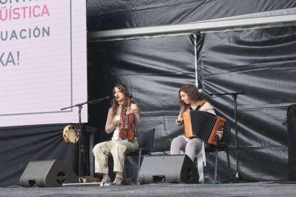 A creadora de contido Sara Seco conduciu o acto nacional contra a emerxencia lingüística, que contou coa participación de numerosas entidades sociais e organizacións sindicais, políticas, culturais, veciñais, de defensa das persoas consumidoras, agrarias, deportivas, de persoas migrantes, educativas, relixiosas ou empresarias. A nota musical puxérona Caamaño e Ameixeiras, un dos grupos máis destacados do relevante panorama musical galego actual.