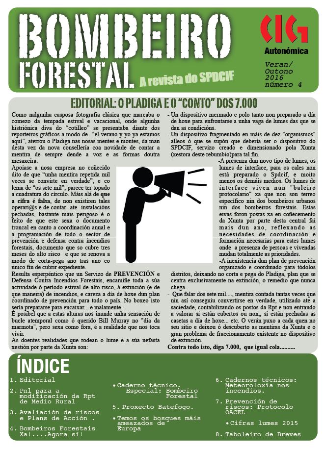 O Bombeiro Forestal, boletín da sección sindical da CIG de Medio Rural de Ourense. No número de outono poderedes ler os seguintes artigos: