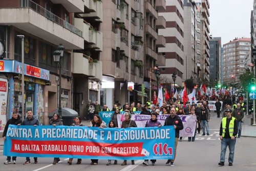Baixo o lema «Contra a precariedade e a desigualdade, na Galiza traballo digno, pobo con dereitos», a CIG mobilizouse este 10 de Marzo en 14 localidades para lembrar as loitas do ano 1972, durante as que foron asasinados en Ferrol pola policía franquista os traballadores da antiga Bazán, Amador Rei e Daniel Niebla. Unhas mobilizacións que foron o xerme do sindicalismo nacionalista galego que hoxe representa a CIG e, por iso, no Día da Clase Obreira Galega, a central quixo facer unha xornada de reivindicación por todo o País porque esta é á maneira de manter vivas e vixentes as loitas do ano 72 pola liberdade, por salarios e condicións laborais xustas e por defender a negociación colectiva en Galiza.